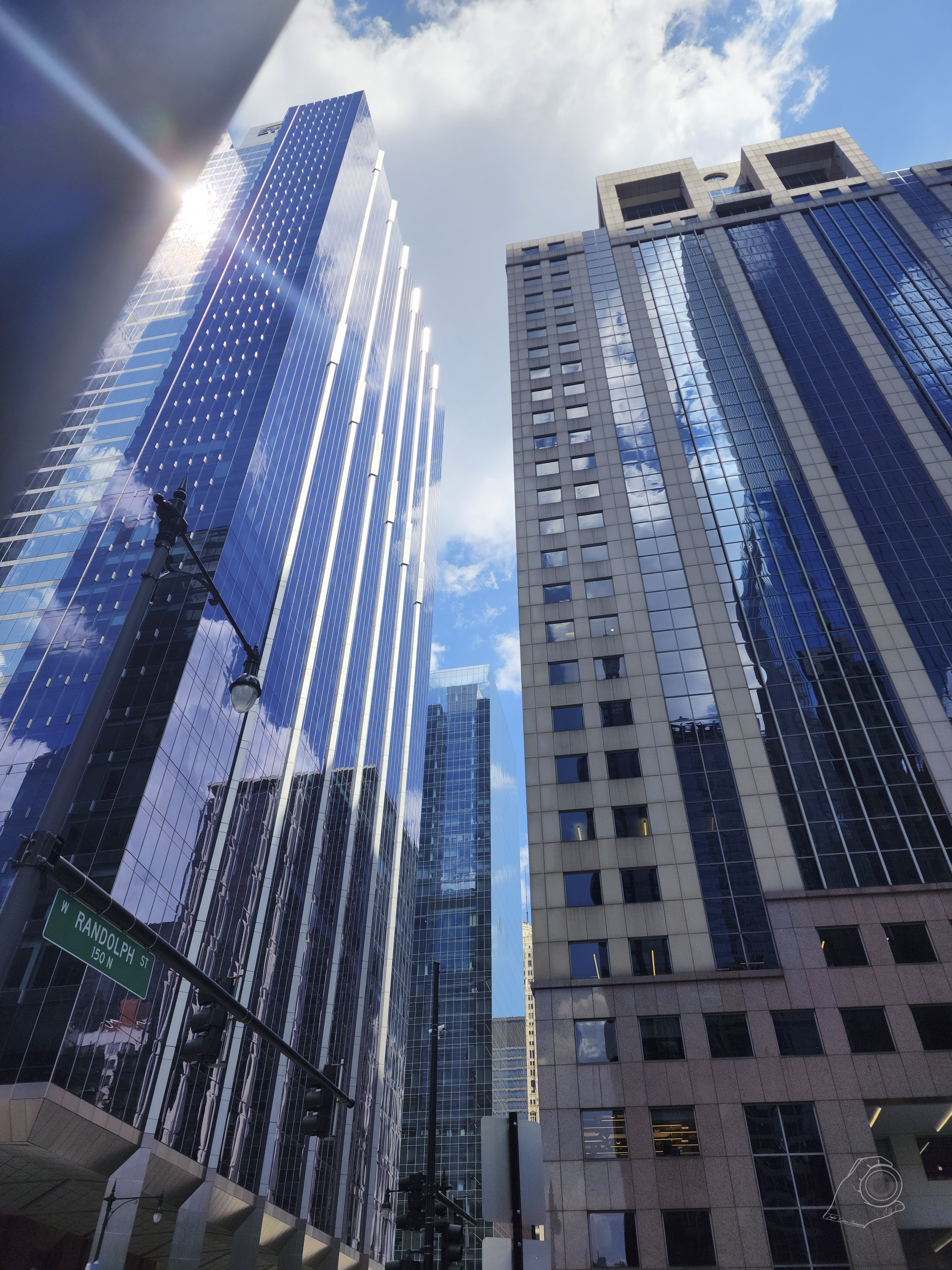 I was waiting for an opera singer friend of mine to wrap up auditions for the Lyric Opera, so I took it upon myself to do some sightseeing and flex my phone's camera while I was waiting around. I took multiple shots of the skyscrapers around me, doing my best to capture perfect reflections, blinding lens flares, etc. I heard this plane before I saw it, and I got my phone in position, bursting several photos at once in hopes I captured this moment. When I got to look at the photo later, I could not believe the timing I had. The perfect reflections, and the perfectly still plane flying overhead, I was giddy that I'd gotten this shot. Sometimes, the best camera really is the one in your pocket, and this shot absolutely is an example of that in my book.